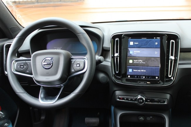 Скільки ж витрачає машина? Наше випробування відбулося за майже оптимальних для «електричок» температур - в діапазоні від +5 до +22 градуси за Цельсієм. Зазначу, що у «офіційні» 17,5 кВт/100 км пробігу можна вкластись, якщо рухатись близько 90 км/год. Якщо їхати на «круїзі» 100-110 км/год, то машина буде витрачати від 19 до 21 кВт/100 км. Все залежить, в першу чергу, від інтенсивності обгонів. Пробіг на повному заряді легко сягне 450-470 км. Також тішить робота нового зарядного інвертора: від «швидкого» термінала потужністю 50 кВт Volvo C40 Recharge брав практично максимум, але від Type 2 вже не волів отримувати 22 кВт, а споживав паспортні 11 кВт.